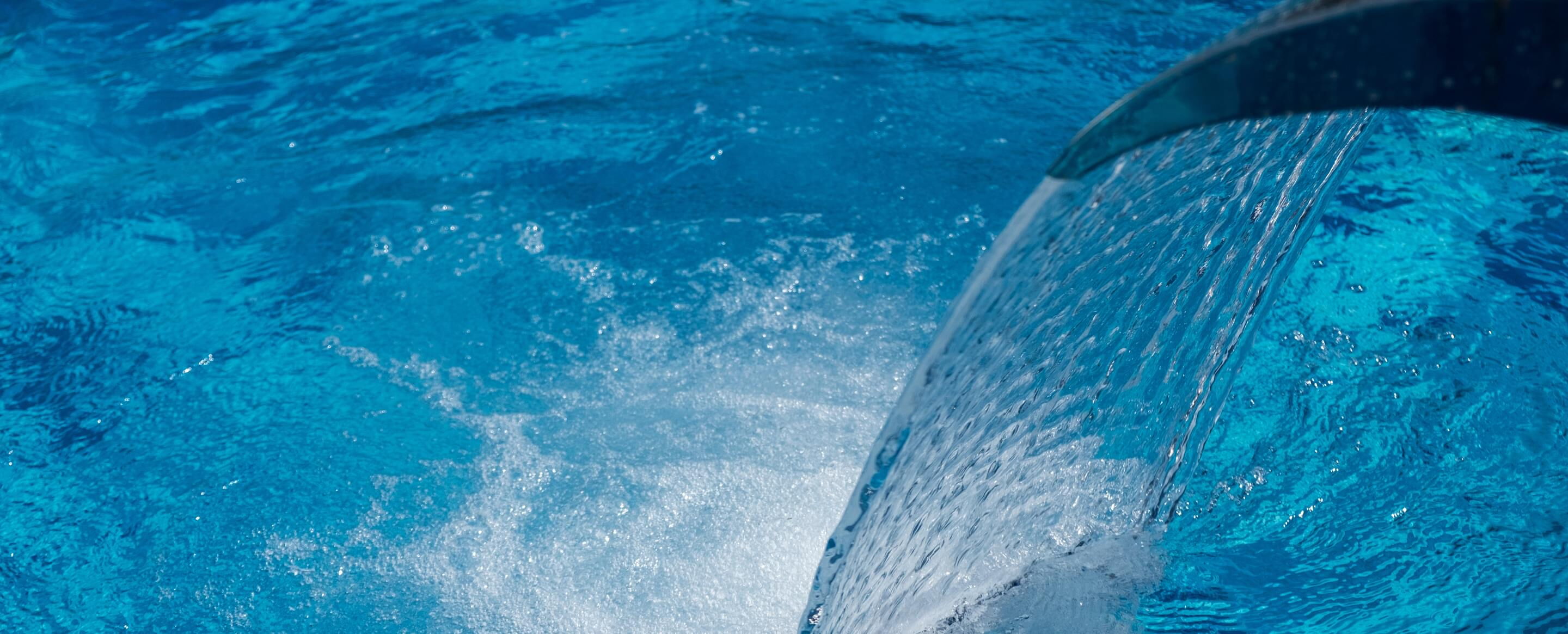 Aus einer Düse im Beckenboden schießt kraftvoll Wasser in breiter Strömung nach oben und tobt wellengleich an der Oberfläche.