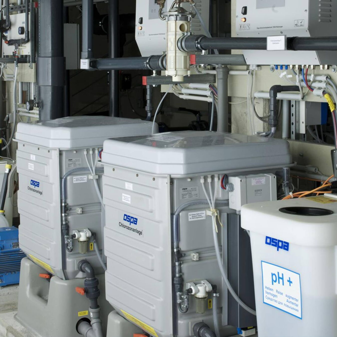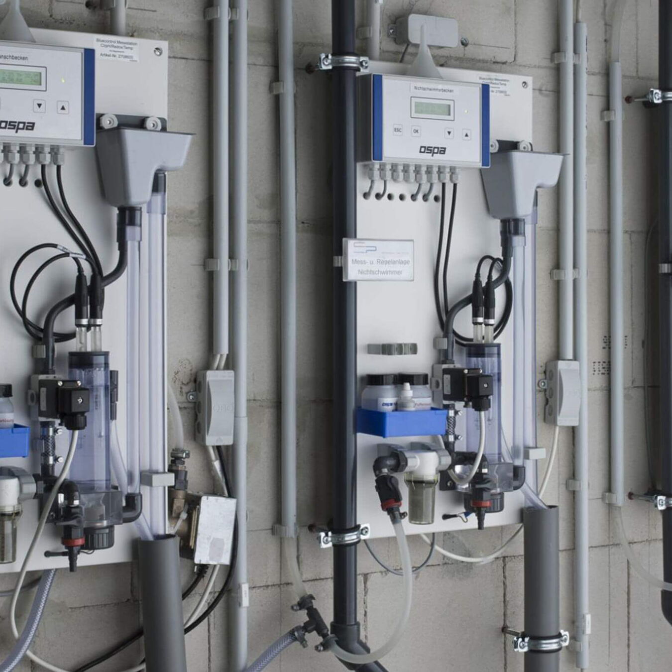 | Aufbereitungstechnik: | 3 x Mehrschichtfilter EcoClean 1250 DL, 2 x BlueClear Desinfektion 100 ELD, Dosieranlage Flockung, pH-Dosierung, Regeltechnik BlueControl |